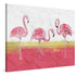 This modern art painting features a trio of elegant flamingos poised gracefully against a textured background of crimson and white, with hints of gold. The artwork's digital watercolor effect lends a contemporary aesthetic, perfect for adding a vibrant touch to a living room or bedroom decor.