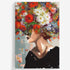 The artwork presents an abstract portrait of a figure adorned with a lavish floral hat. Vibrant colors such as red, orange, yellow, and green dominate the composition, conveying an energetic vibe. The style merges modern art with abstract painting to create a dynamic and aesthetically pleasing image. This vivid piece would suitably decorate a modern-styled living room or bedroom, adding color and vibrancy.